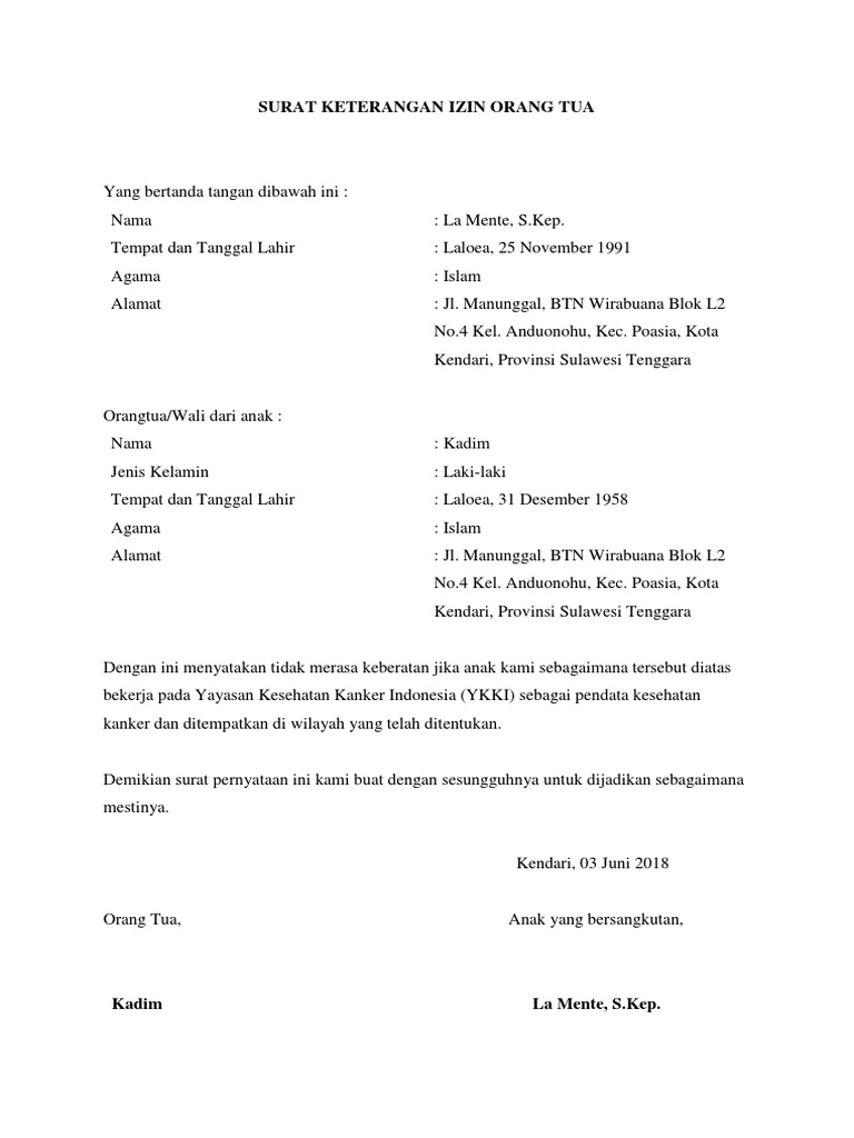 Pudding yummy august 01, 2021 surat ijin orang tua/suami/istri adalah surat yang digunakan/dikeluarkan untuk melengkapi persyaratan melamar pekerjaan baik di dalam negeri maupun di luar negeri, surat ijin orang tua apabila yang bersangkutan belum berkeluarga. Surat izin istri 20+ contoh surat izin tidak masuk kerja untuk berbagai keperluan 16+ contoh surat pernyataan istri mengizinkan suami menikah lagi peraturan badan penyelenggara jaminan sosial kesehatan nomor 6 tahun 2018 tentang administrasi kepesertaan program jaminan keseh wow contoh surat keterangan gaji 3 bulan terakhir 36 bagi desain surat. Contoh surat izin orang tua. Hormat kami, orang tua mahasiswa Demikian surat pernyataan ini kami buat dengan sesungguhnya untuk dijadikan sebagaimana mestinya.