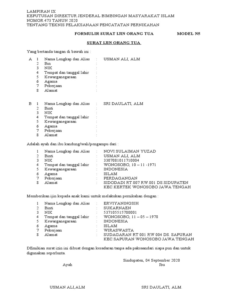 Surat izin orang tua 1.